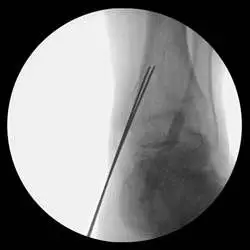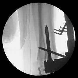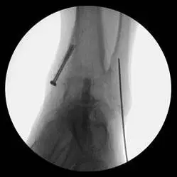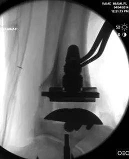 This is a pic of the implant getting mapped out for placement in the distal tibia