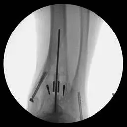 These first three pics are placement of screws in the medial malleolus and distal fibula to aid in stability.