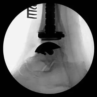 Preop, Intraop and Postop X-rays status post Total Ankle Replacement for Ankle Arthritis