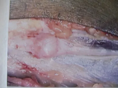 This is a picture of bulb sural neuroma that was removed the remaining nerve was sutured to the peroneal muscle