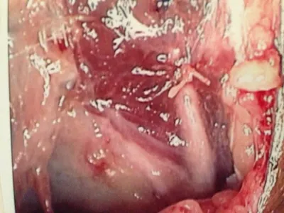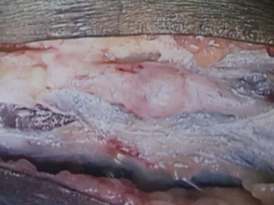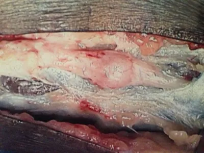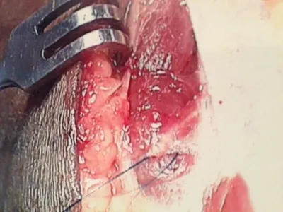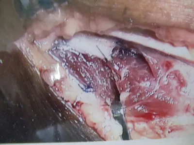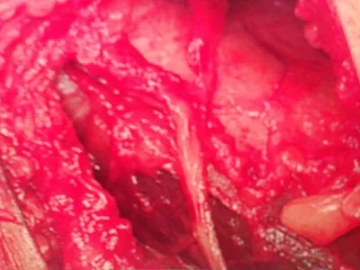 Intraop Pics of Sural nerve that was entrapped. We released the nerve and attached the stump of the nerve into the peroneal muscle with suture