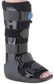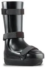 Initial treatment of this condition is focused on support of the foot and ankle bones and soft tissue as they transition from the acute phase to the consolidation phase. As the foot transitions there is a lot of destruction of the bone and joints that can occur leading to a breakdown in the structure of the foot especially at the arch, similar to that of a falling bridge where most of the damage occurs at the highest point of stress. During this time the foot and ankle are supported with a CAM walking boot (pictured left), and walking cast also known as a total contact cast (pictured center) or a customized boot called a CROW (Charcot Restraint Orthotic Walker) boot (pictured right). Early detection is key to successful conservative treatment. However, because the underlying cause is due to neuropathy (lack of sensation), many times the condition is not recognized by the individual because they do not experience pain during the process.