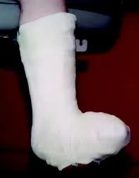 In the picture below one can see the bone in the middle of the foot pointed upward and displaced because of the breakdown of the middle of the foot. The bone (cuneiform) has to be put back into position and held in that position to allow healing.