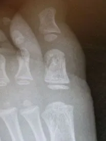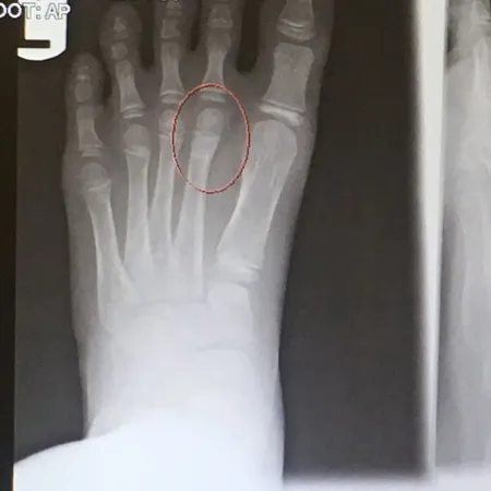 Pediatric Coalition Fracture of the DIPJ fifth toe initial and healed