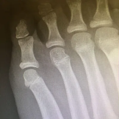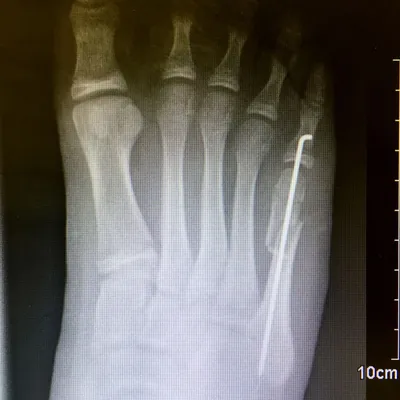 Pre and Postop ORIF Displaced Big Toe Intra-articular Pediatric Fracture (Below)