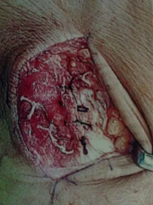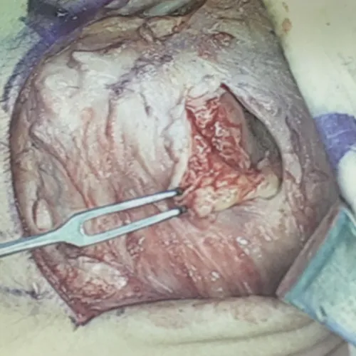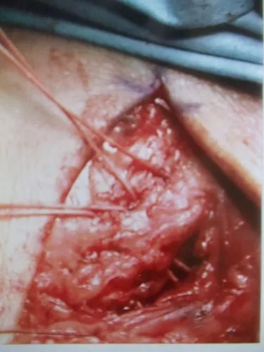 The CFL is identified to beneath the peroneals to the left of the incision.