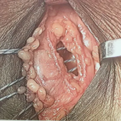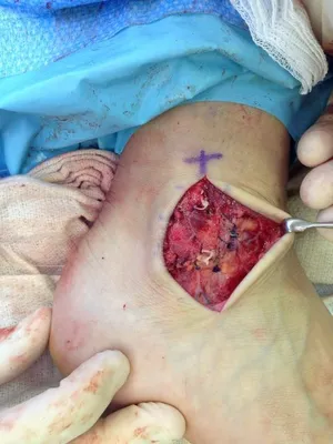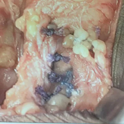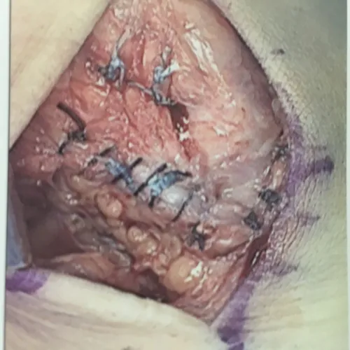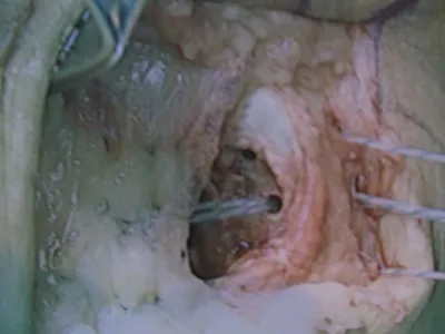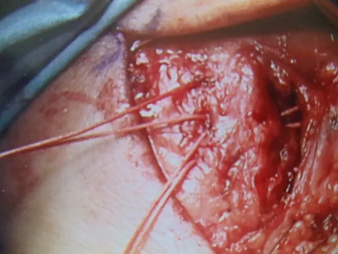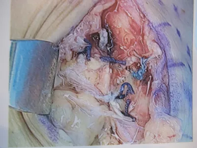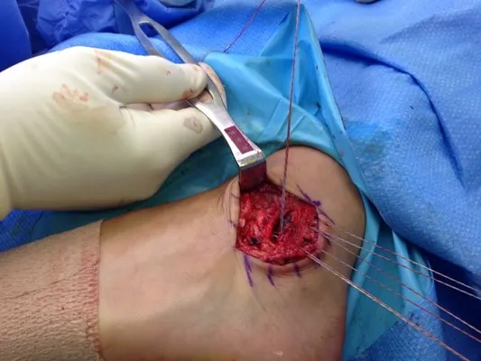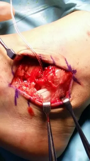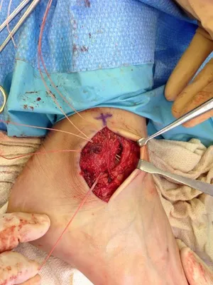 This is a picture of the CFL being repaired with suture during peroneal tendon repair.