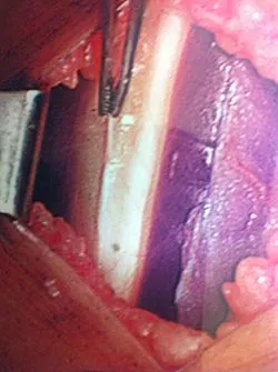 Complete release of the fascia (Being held by the hemostats)