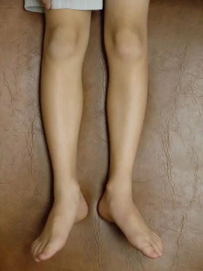 - If the hip is normal the knee appears to be straight when watching the child walk but yet the foot and lower leg turn to the outside.