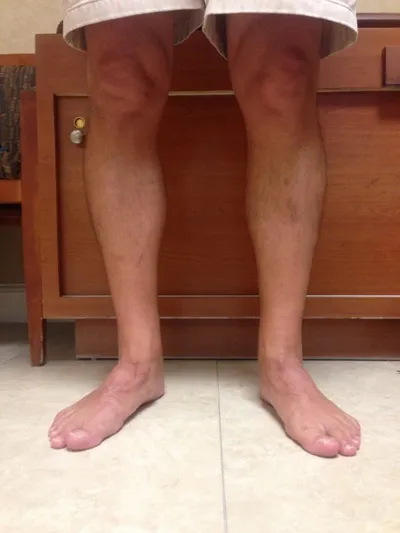 - If the deformity is significant x-rays may be taken. The lower leg bone (transmalleolar axis) is measured relative to the upper leg bone (bicondylar axis of proximal tibia). In an adult it is approximately 14 degrees external.
