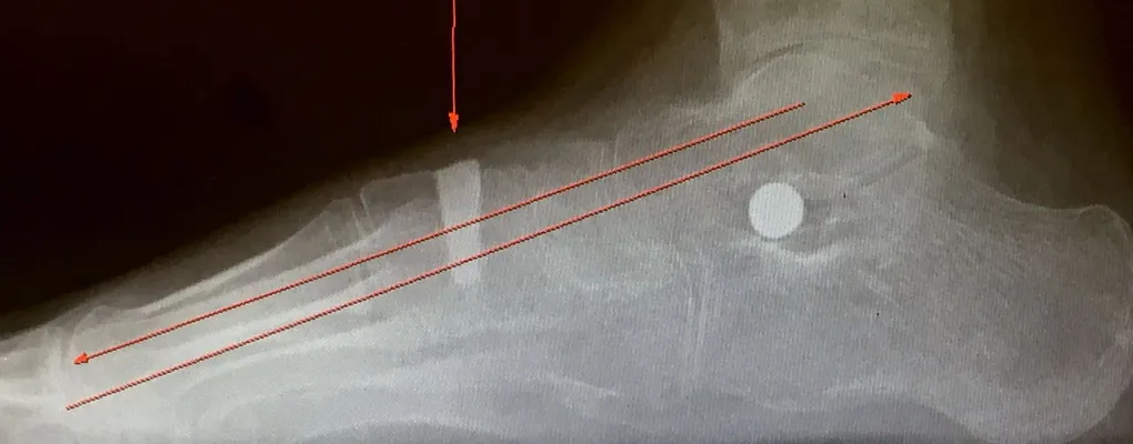 On the lateral x-rays, We measure over 1.5cm increase of height of foot.
