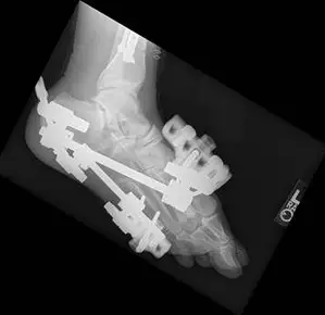 These are pics of an open midfoot fracture and dislocation after a motor vehicle accident.