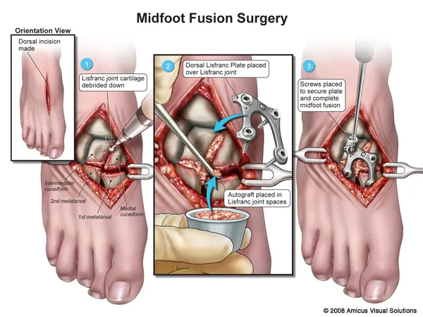 Post Traumatic Arthritis after Lis Franc or Intra-articular Tarsometatarsal Fracture needing Midfoot Fusion