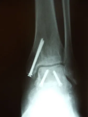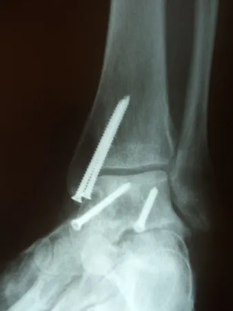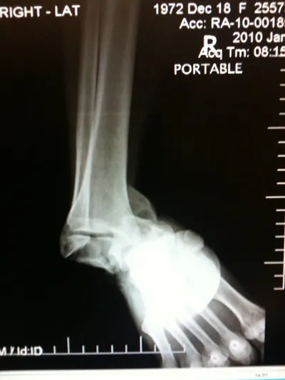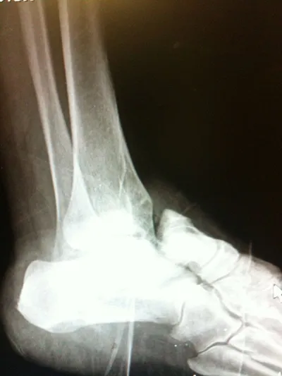 Pictures of a talar neck fracture with displacement of the talar body and subtalar and ankle dislocation prior to surgery