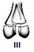 Salter Harris III fractures begin at the joint surface of the epiphysis and progresses physis where it turns approximately 90 degrees and extends to the periphery. Generally, these fractures occur in older children because the growth plates are nearing closure. These fractures should be accurately be reduced if displaced. Closure of the growth plate is of a concern due to damage to the growth plate blood vessels