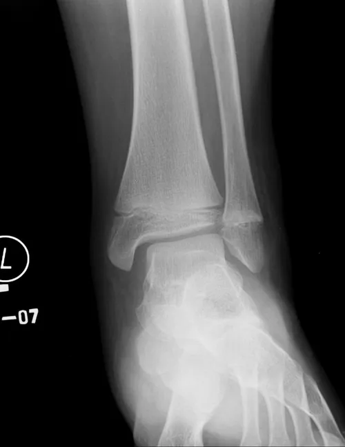 Salter-Harris I fracture is a complete separation of the epiphysis from the metaphysis with the fracture line passing through the physics. This injury is more common in young children. In most cases, there is a spontaneous reduction of the fracture. Treatment includes below knee cast or CAM walker immobilization.