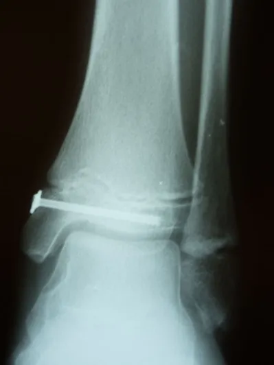 Post- surgical repair of the injury with screws traversing the injured area to allow good reduction and healing without affecting active growth plate areas.