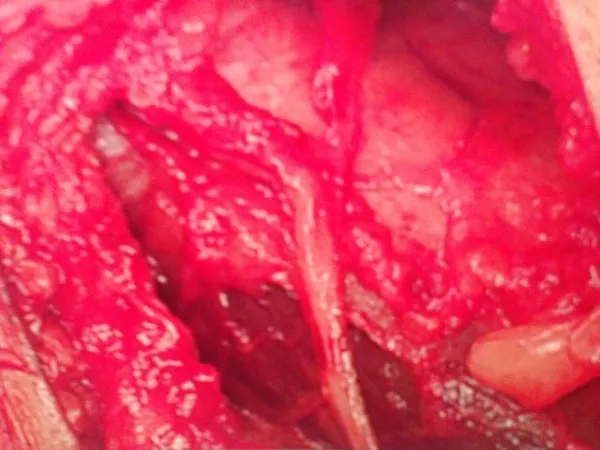 Intraop Pics of the Sural nerve that was entrapped. We released the nerve and attached the stump of the nerve into the peroneal muscle with suture