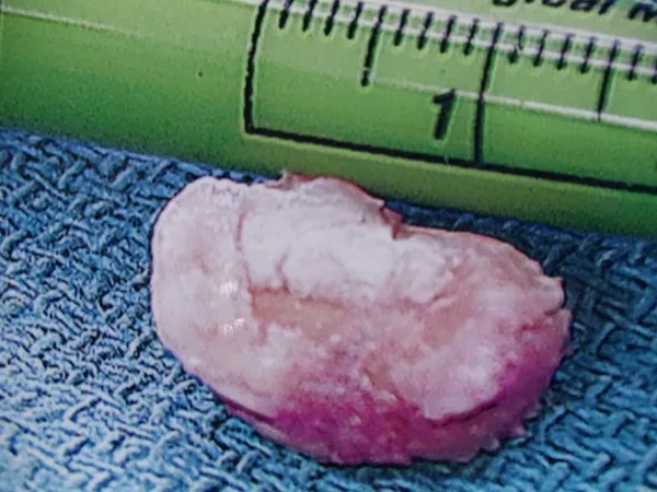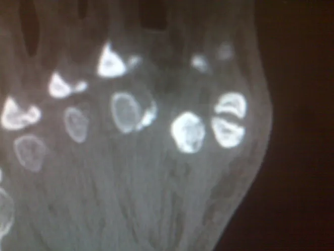 The fracture can be seen. Due to continued pain, a sesamoidectomy was performed. The bone is unhealthy and was removed.